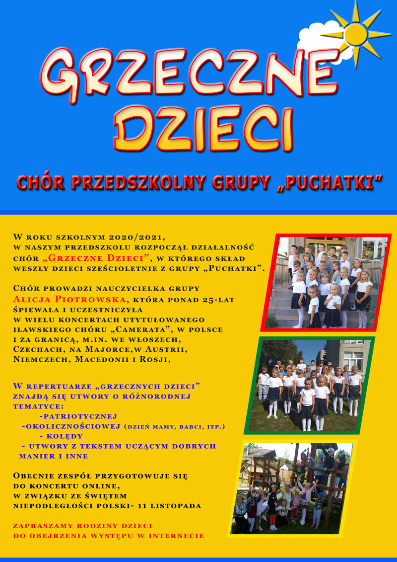 Chór przedszkolny "Grzeczne Dzieci" podczas koncertu piosenek okolicznościowych - maj 2021
