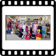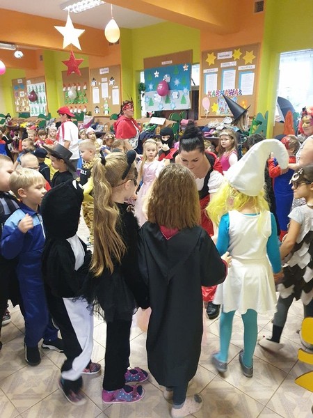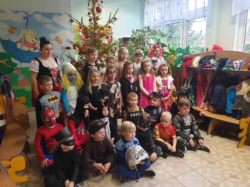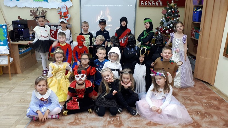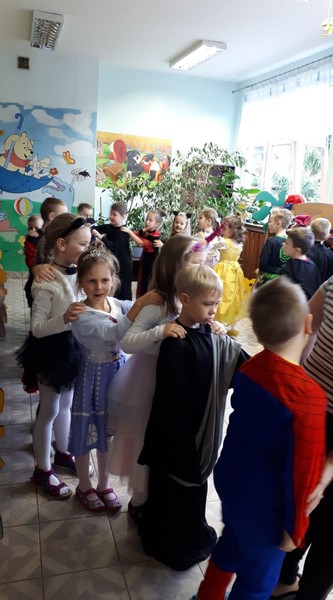 Dzisiaj realizowaliśmy zadanie „Dzień postaci z bajek” oraz omówienie postaci za jakie przebrały się dzieci. Rozpoznawanie bajek.