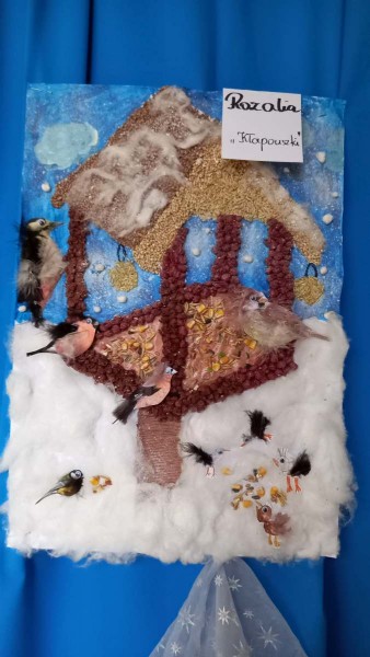 Prace zostały wykonane przez nasze dzieci z przedszkola na konkurs pt.: Pomagamy ptakom organizowany przez lokalną firmę ROLIMPEX S.A. z siedzibą przy ul. Lubawskiej, 14-200 Iława.